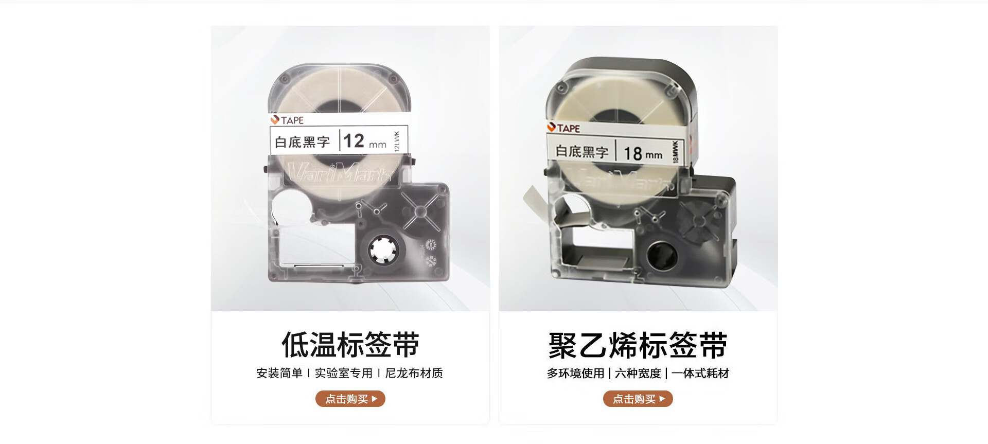 威码(VariMark) 原装标签机GT系列专用聚酯覆膜色带标签带固定资产不干胶防水防油标签带一体式标签带盒 白底黑字 12mm